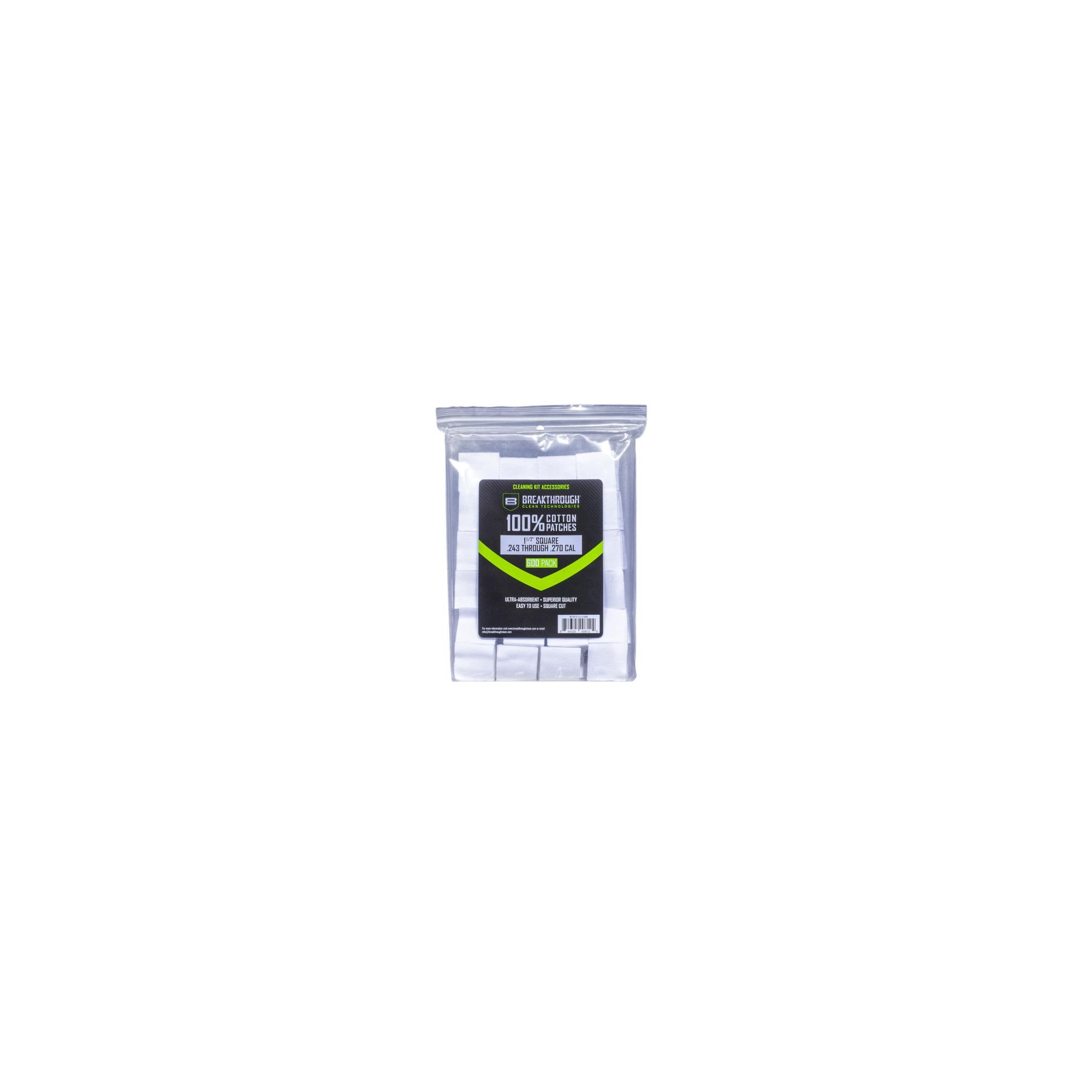600 patchs de nettoyage en coton calibrés pour du .243 au .270 cal.