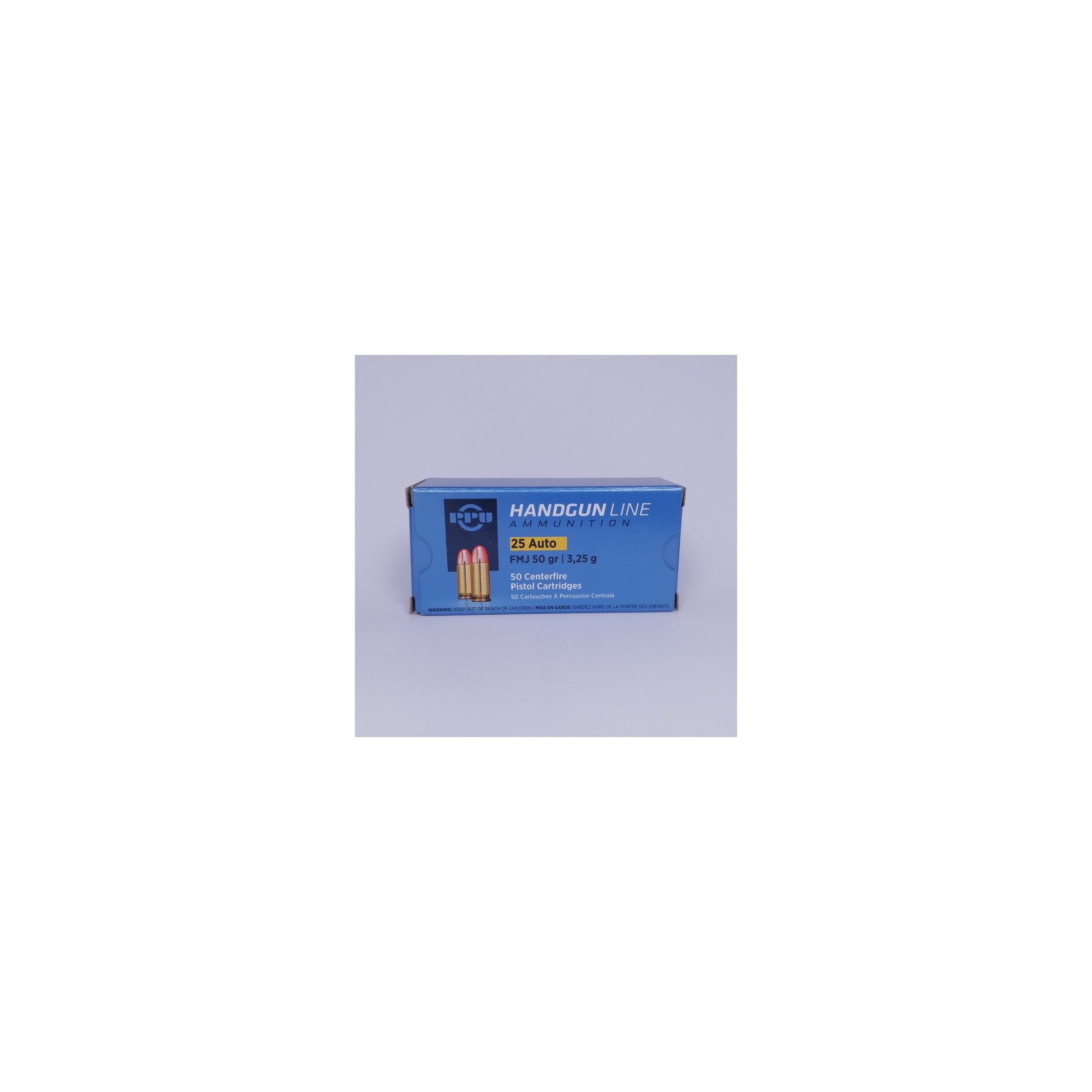 50 cartouches PPU PARTIZAN, calibre 6.35/25acp, FMJ 50grains.
