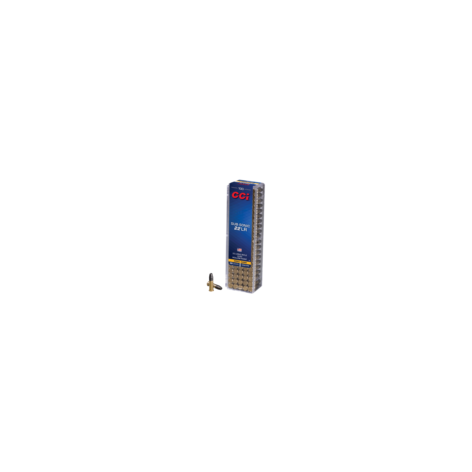 100 cartouches CCI HP SUBSINIC cal 22lr, de 40grains.